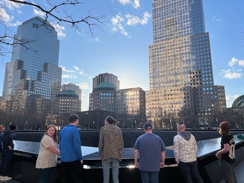 The flight was smooth until just before landing when, it felt like we were driving 200 mph down a country road, but we are on the ground and in the hotel. We used this evening as an opportunity to get some food, take a quick visit to the World Trade Center, and get some much needed rest.